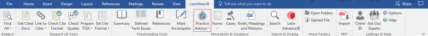 Begin legal drafting with relevant, valuable precedent documents at your fingertips. Lexis® for Microsoft® Office drafting tools connect you directly with Lexis® legal content and Practical Guidance® practical guidance from attorney authors. Save time by accessing everything you need from within your Microsoft® Word document.